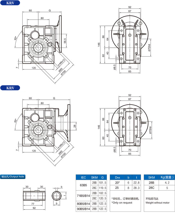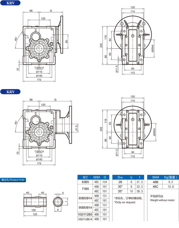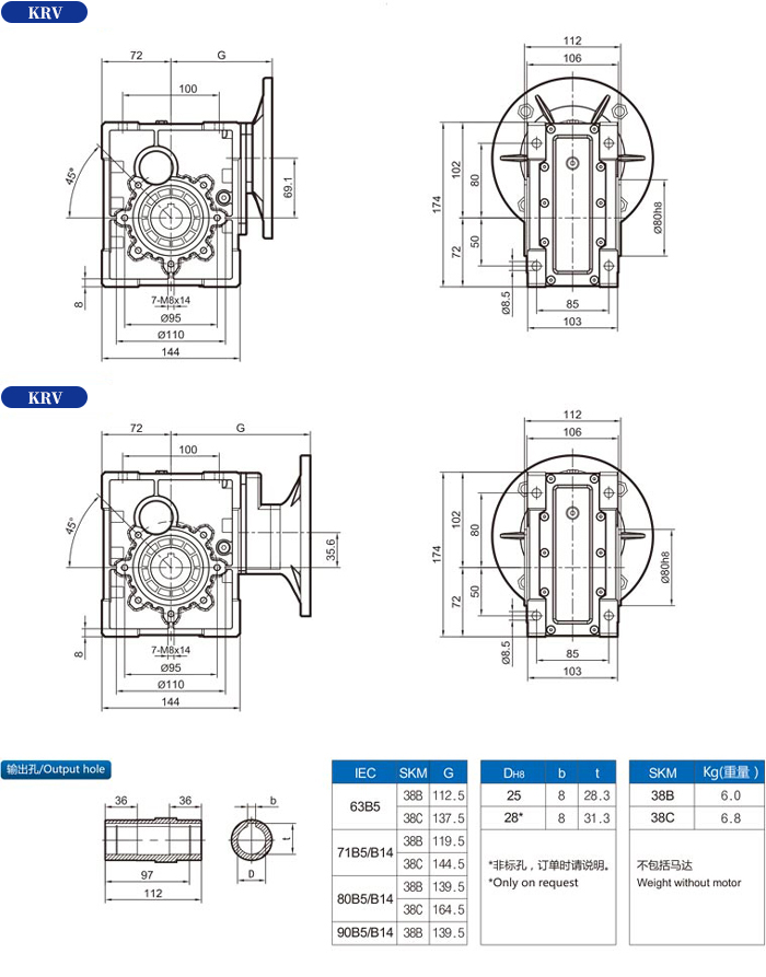 KRV28B-58C(IEC)斜齿-准双曲面齿轮减速机(KRV)