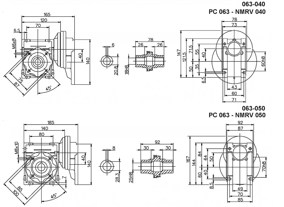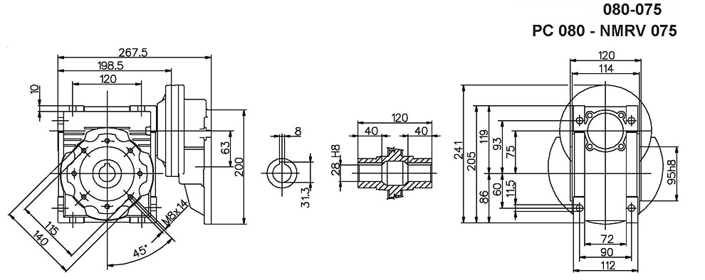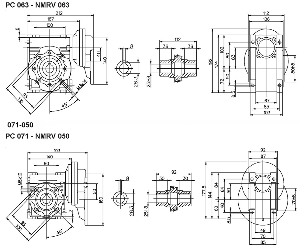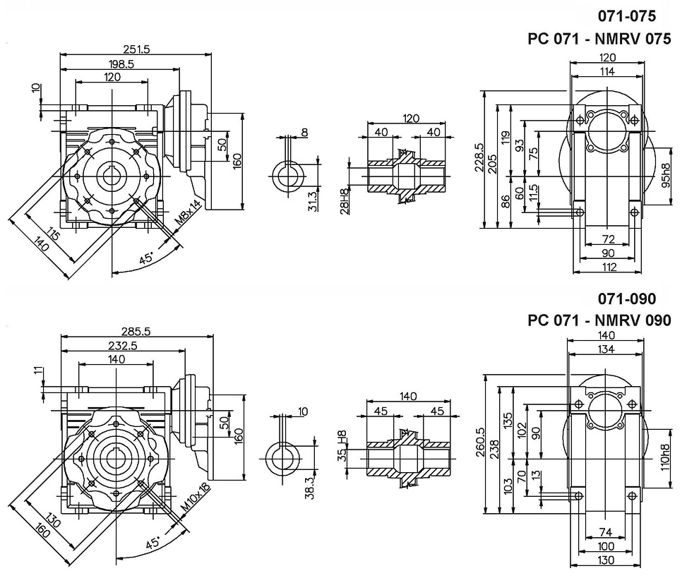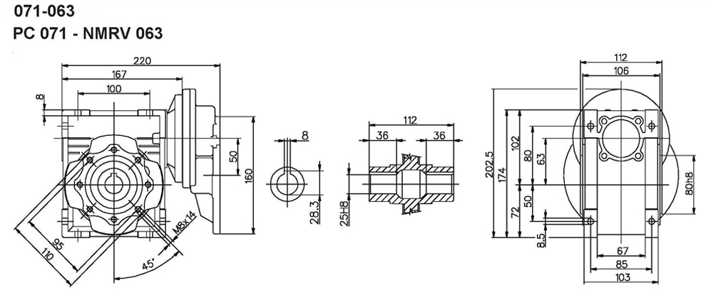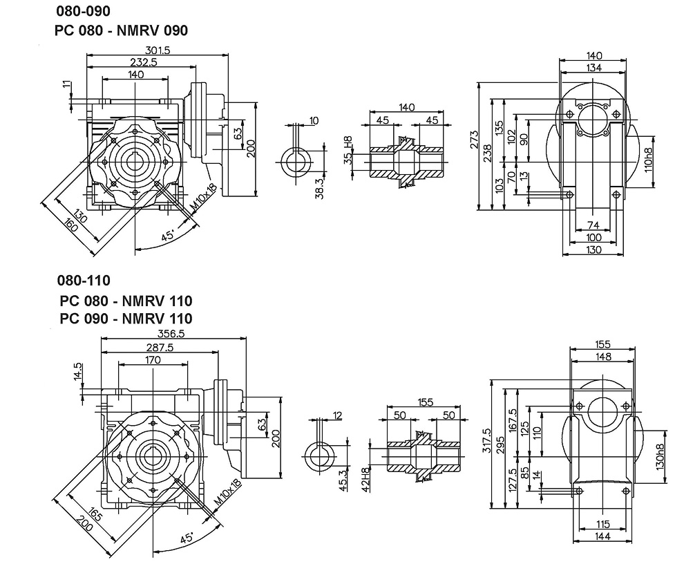 PC+NMRV给合外观尺寸 (Dimensions for the combination of PC+NMRV)